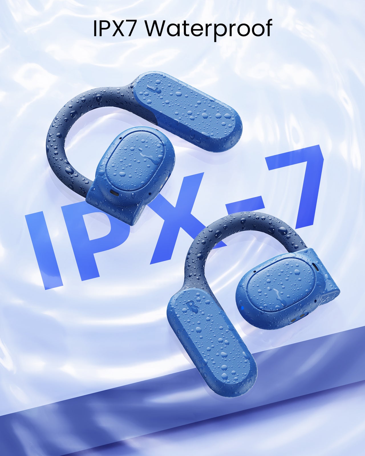 - Comfortable Open Ear Design & IPX7 Waterproof: Elevate your audio journey with K08 open-ear Bluetooth headphones. Crafted for unmatched comfort, their unique design embraces your ears for a natural, pressure-free listening experience. Soft silicone ear hooks ensure a snug fit for any activity. Enhanced with an IPX7 waterproof rating, these headphones are resilient in all weather conditions, empowering you to explore any environment with confidence.