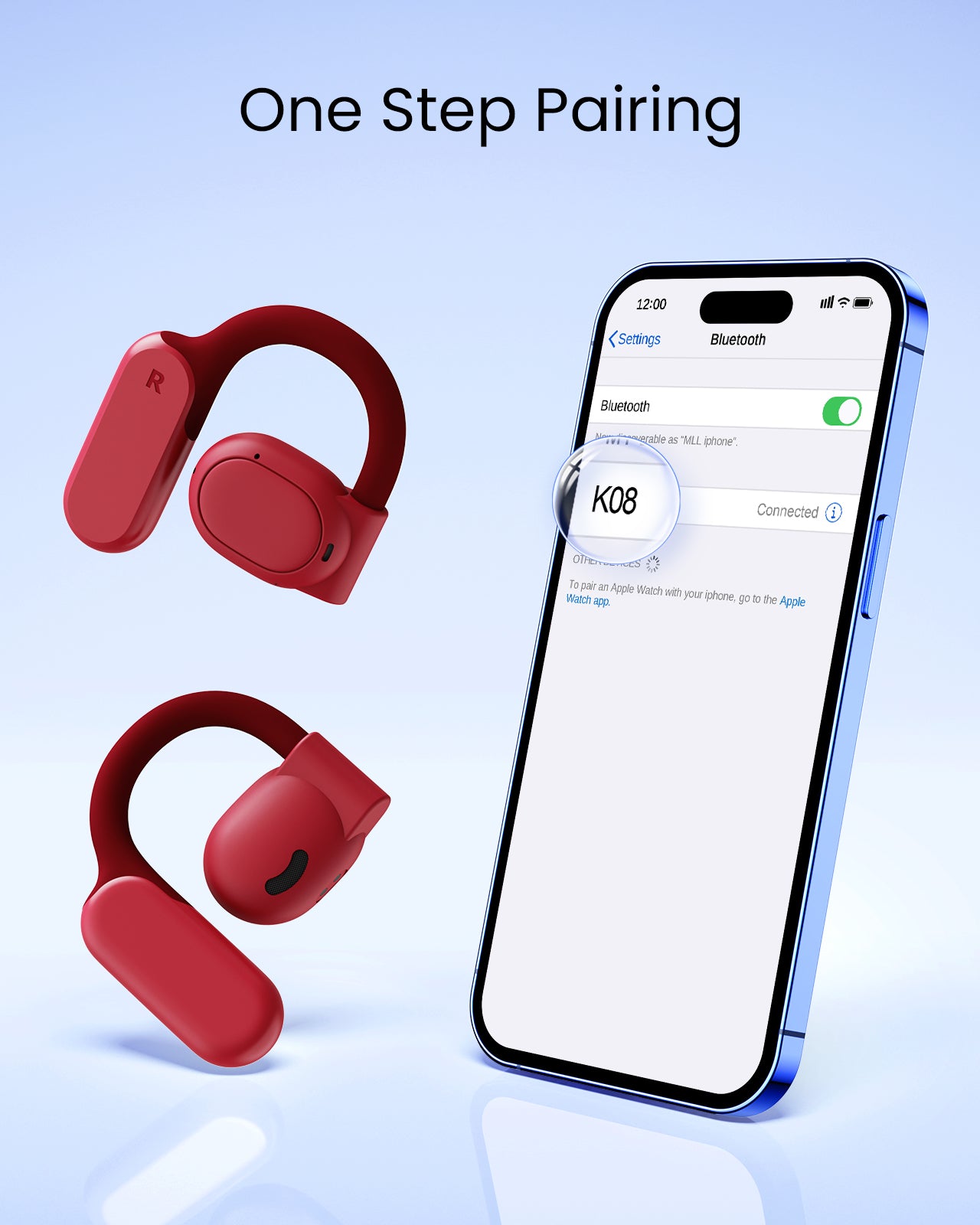 - Advanced Bluetooth 5.3 for Seamless Connectivity: Experience the cutting-edge with K08 open ear wireless earbuds, equipped with the latest Bluetooth 5.3 technology. They promise exceptionally quick data transfer and a reliable connection up to 33 feet. Delight in an uninterrupted, low-latency audio journey that starts the moment you take them out of the case, all made effortless by the smart auto on and connect feature.