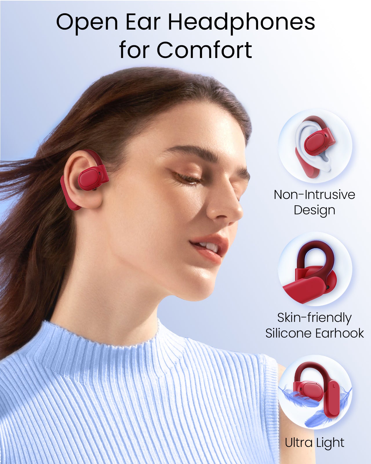 - Comfortable Open Ear Design & IPX7 Waterproof: Elevate your audio journey with K08 open-ear Bluetooth headphones. Crafted for unmatched comfort, their unique design embraces your ears for a natural, pressure-free listening experience. Soft silicone ear hooks ensure a snug fit for any activity. Enhanced with an IPX7 waterproof rating, these headphones are resilient in all weather conditions, empowering you to explore any environment with confidence.