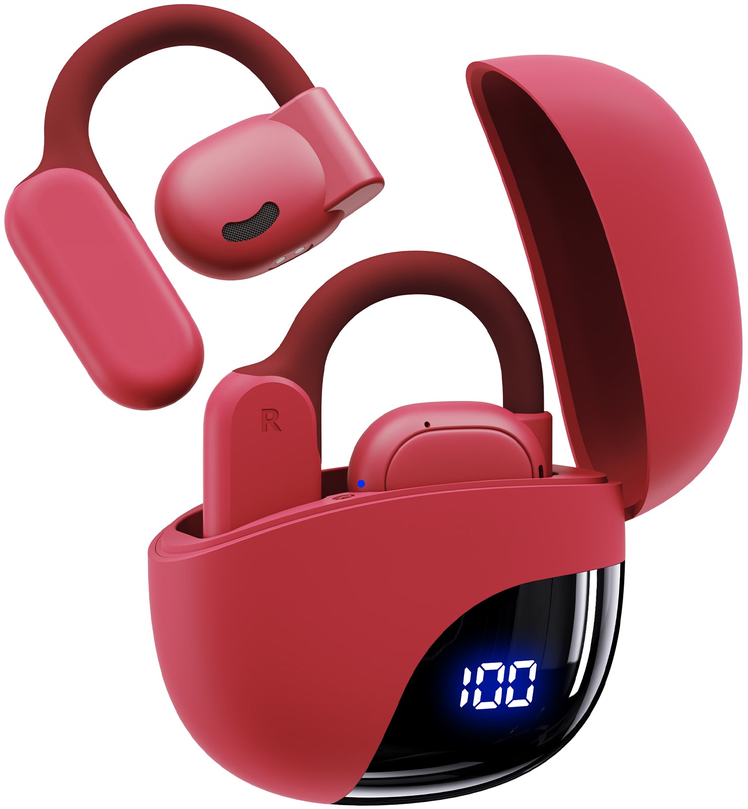 TAGRY Open Ear Headphones Bluetooth Ear buds 80Hrs Playtime Wireless Earbuds with Earhooks IPX7 Waterproof Touch Control Air Conduction Sport Headsets Bluetooth 5.3 Earphones for Workout Running Red